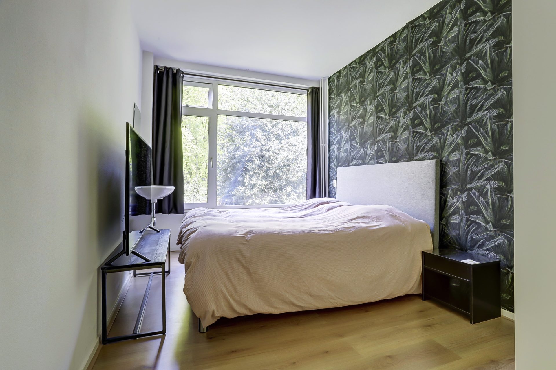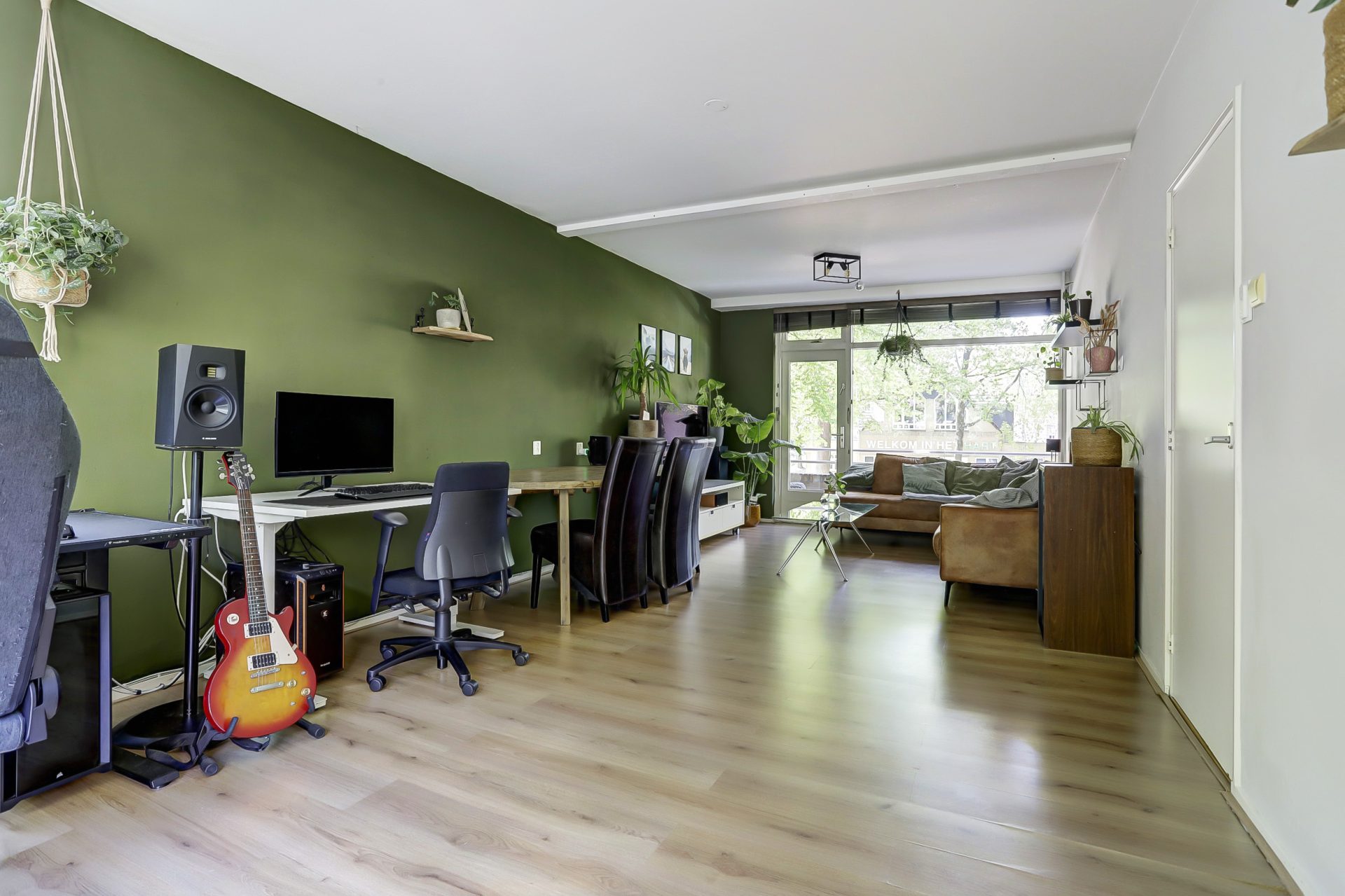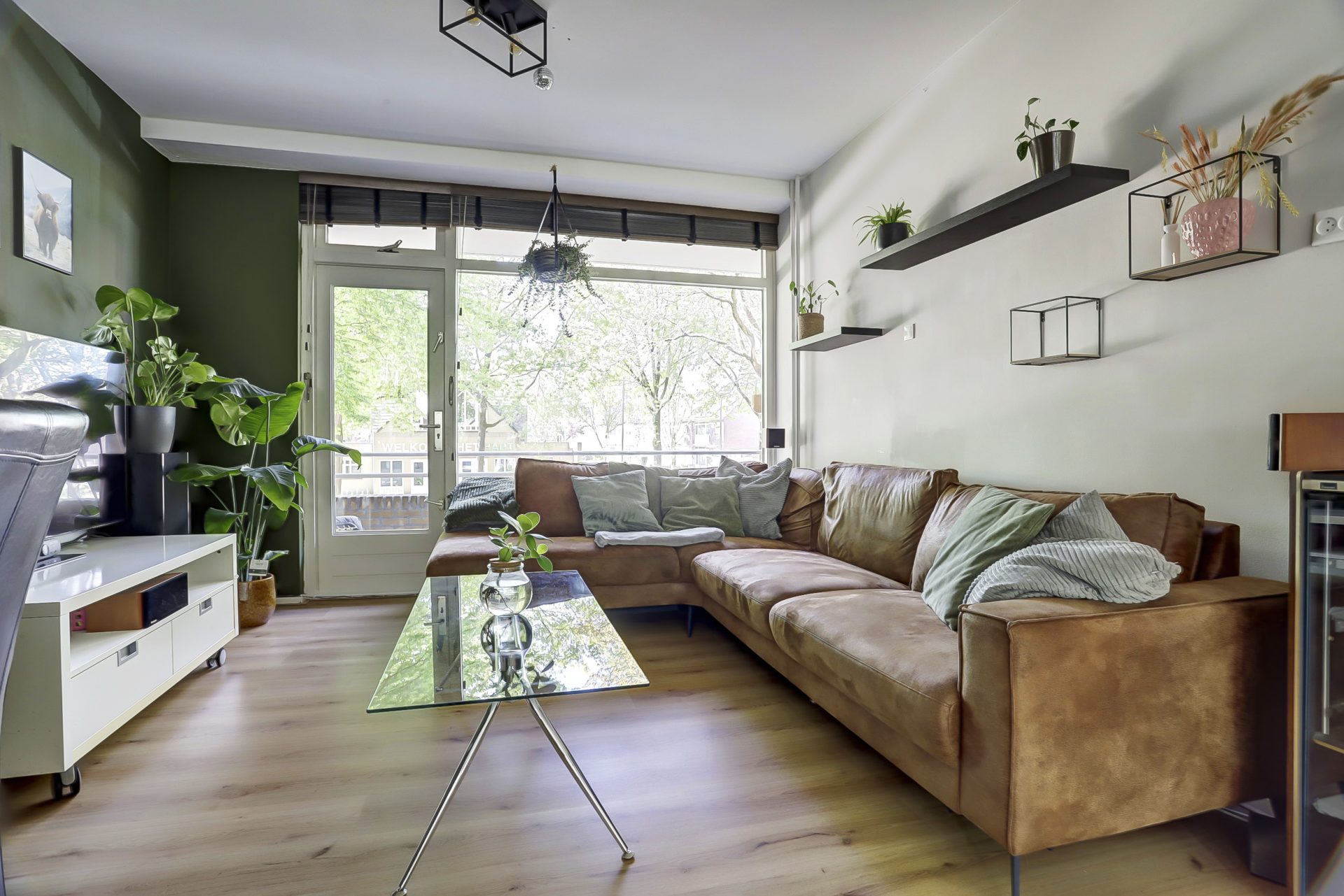 • Woonkamer: De ruime en lichte woonkamer van circa 32 m² heeft ramen aan drie zijden, waardoor je de hele dag door geniet van aangenaam daglicht. Er is meer dan genoeg plek voor bijvoorbeeld een royale hoekbank én een eettafel voor zes personen. De vloer is afgewerkt met laminaat, wat zorgt voor een verzorgde uitstraling. Via de woonkamer heb je toegang tot het balkon op het westen – een heerlijke plek om te ontspannen, zeker in de lente en zomer, wanneer je wordt omgeven door het groen van de omliggende bomen.