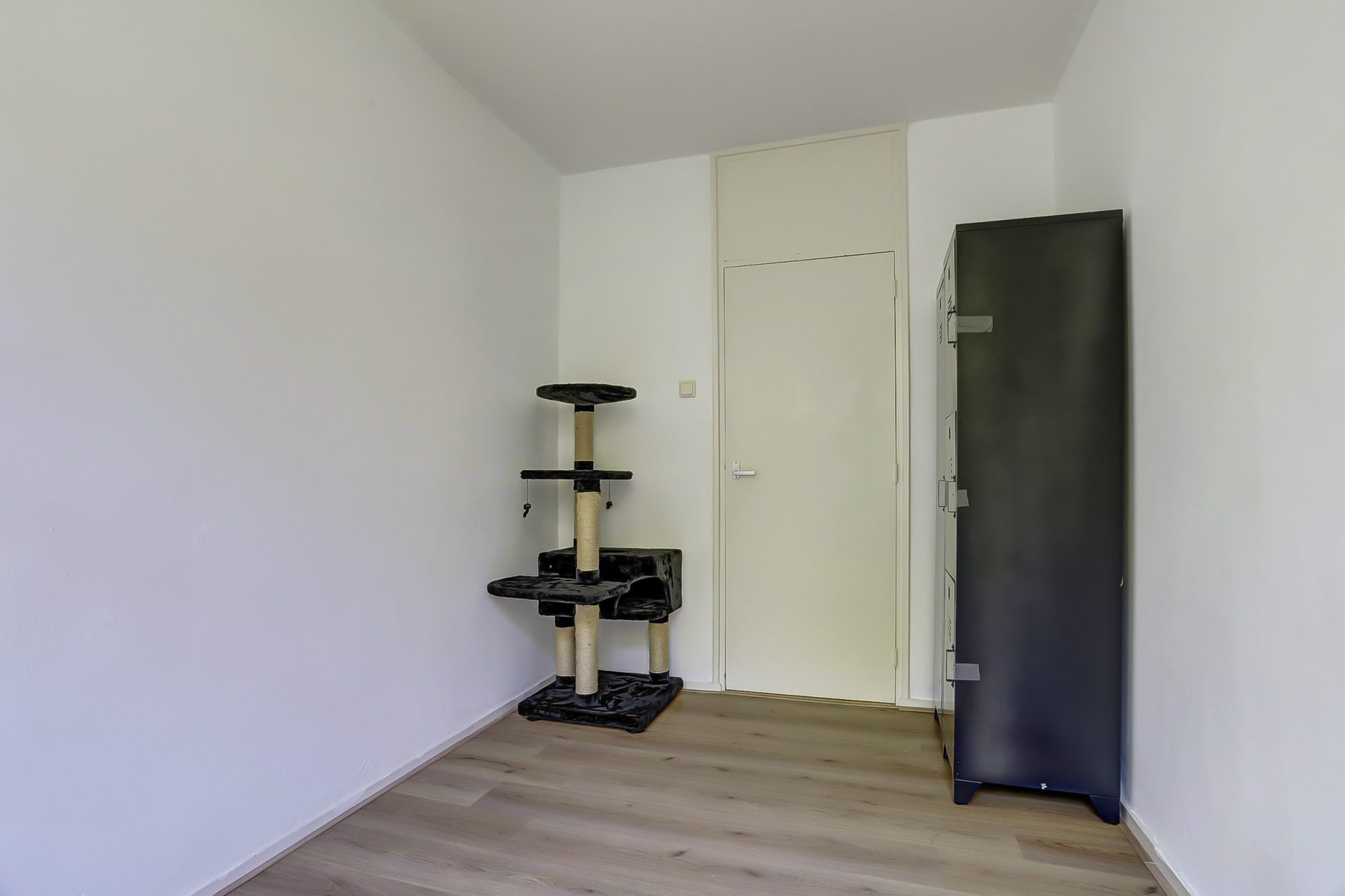 • Slaapkamer 1: Deze slaapkamer (ca. 11 m²) bevindt zich aan de achterzijde van het appartement en is voorzien van een inbouwkast en een wastafel. De vloer is afgewerkt met laminaat.