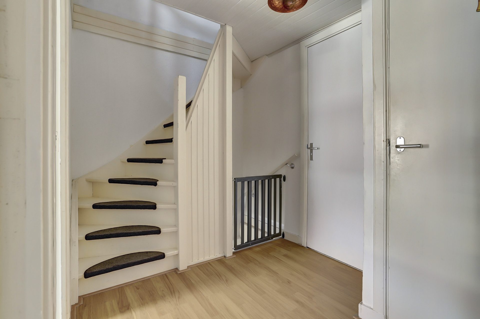 Bij binnenkomst in de woning kom je in de hal met de vernieuwde voordeur en de garderobe. Vanuit de hal heb je toegang tot de trapopgang en de deur naar de woonkamer.
