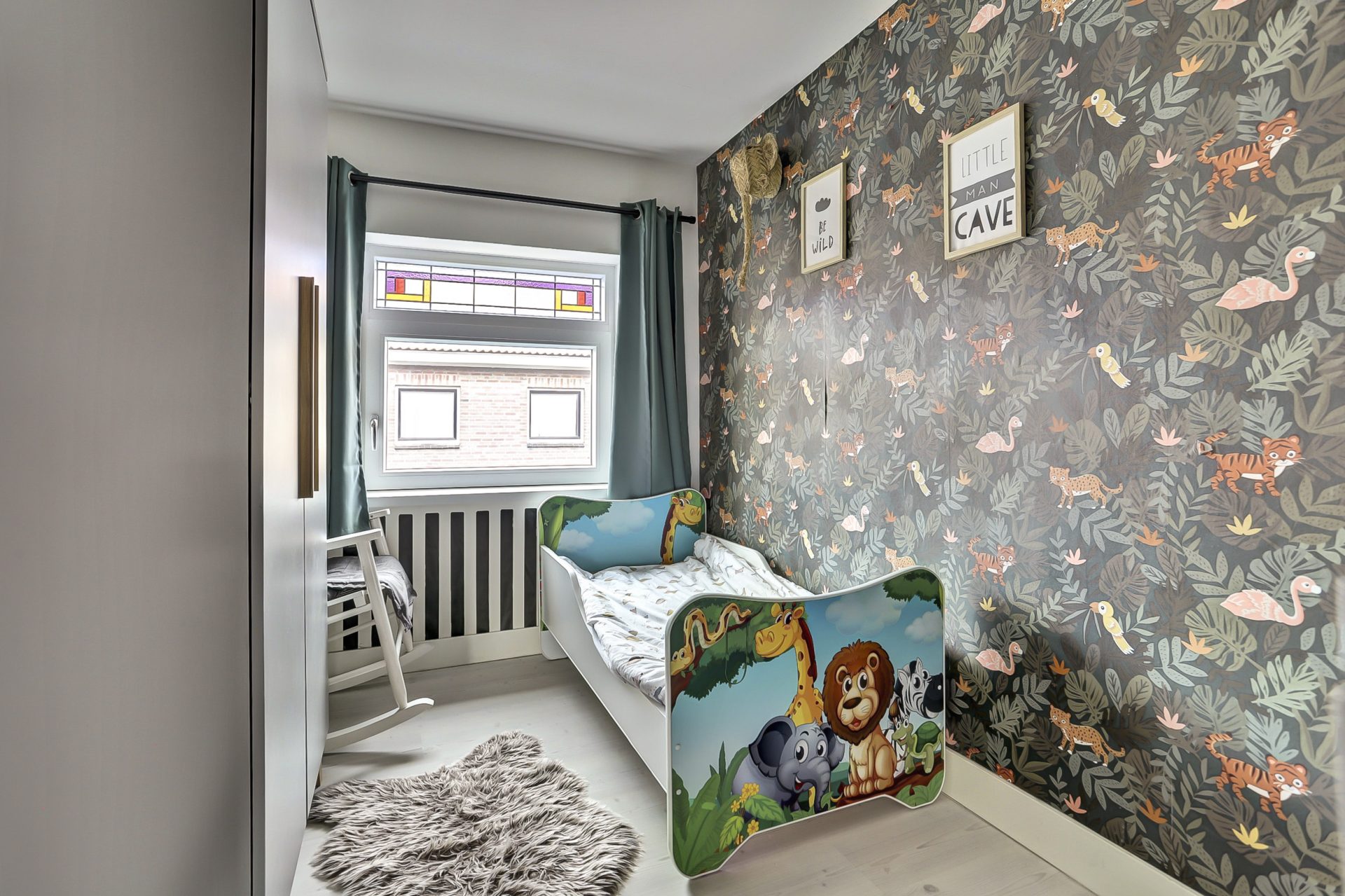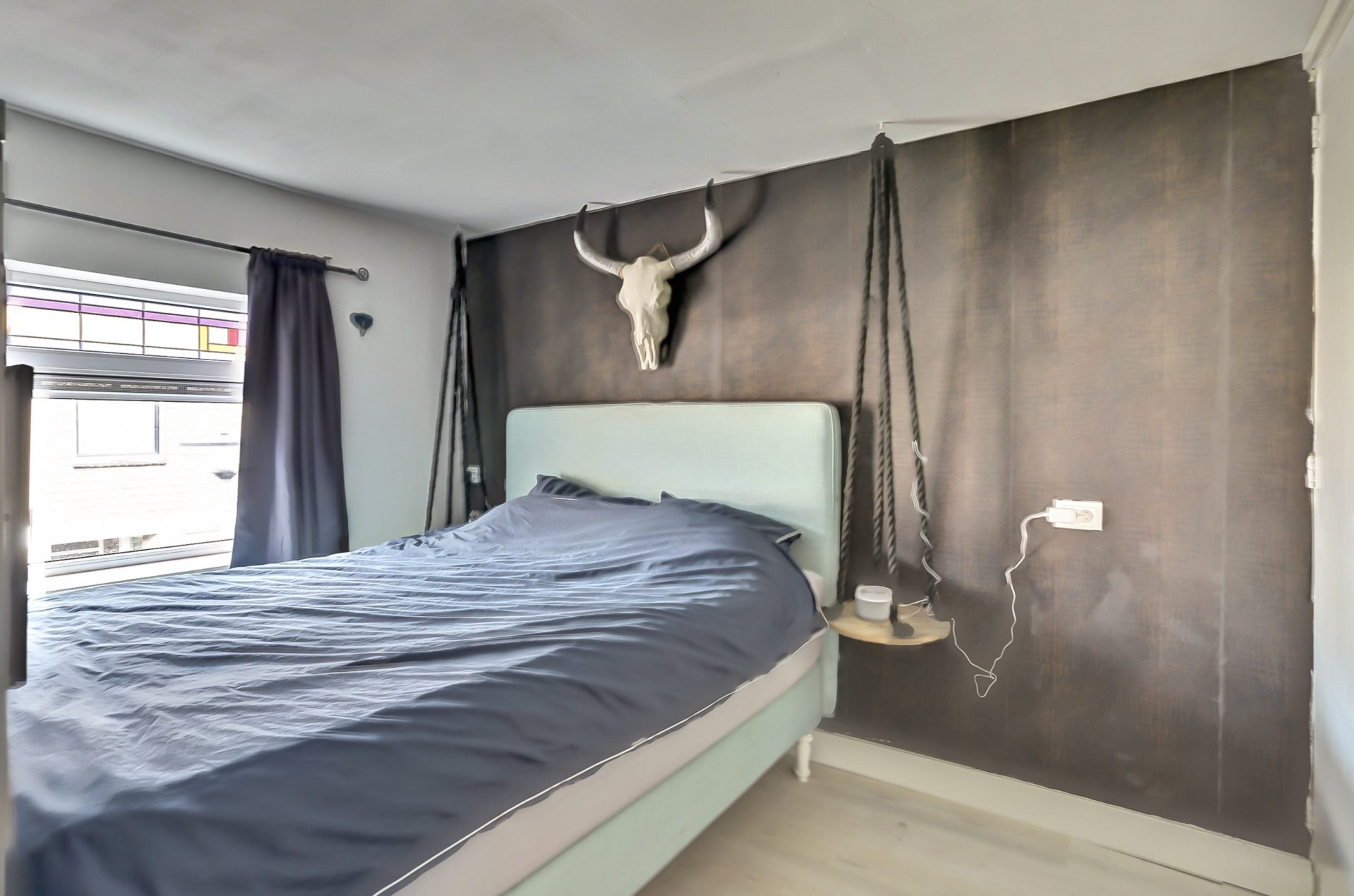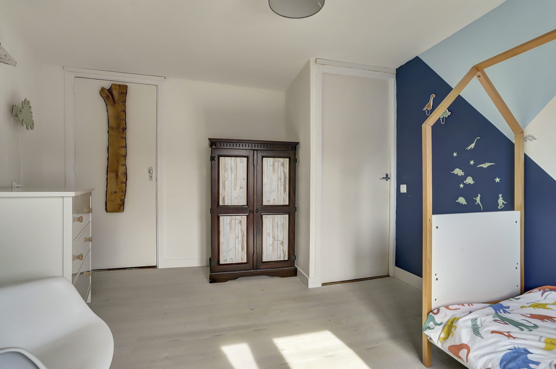Vanaf de overloop zijn drie slaapkamers, de badkamer en de vaste trap naar de zolder bereikbaar. Aan de voorzijde van de woning liggen twee slaapkamers, waarbij het glas-in-lood in de ramen een charmant detail vormt. Aan de achterzijde bevindt zich een ruime derde slaapkamer. De gehele bovenverdieping is afgewerkt met een doorlopende lichte laminaatvloer en voorzien van kunststof kozijnen met horren. Twee slaapkamers beschikken over praktische inbouwkasten.