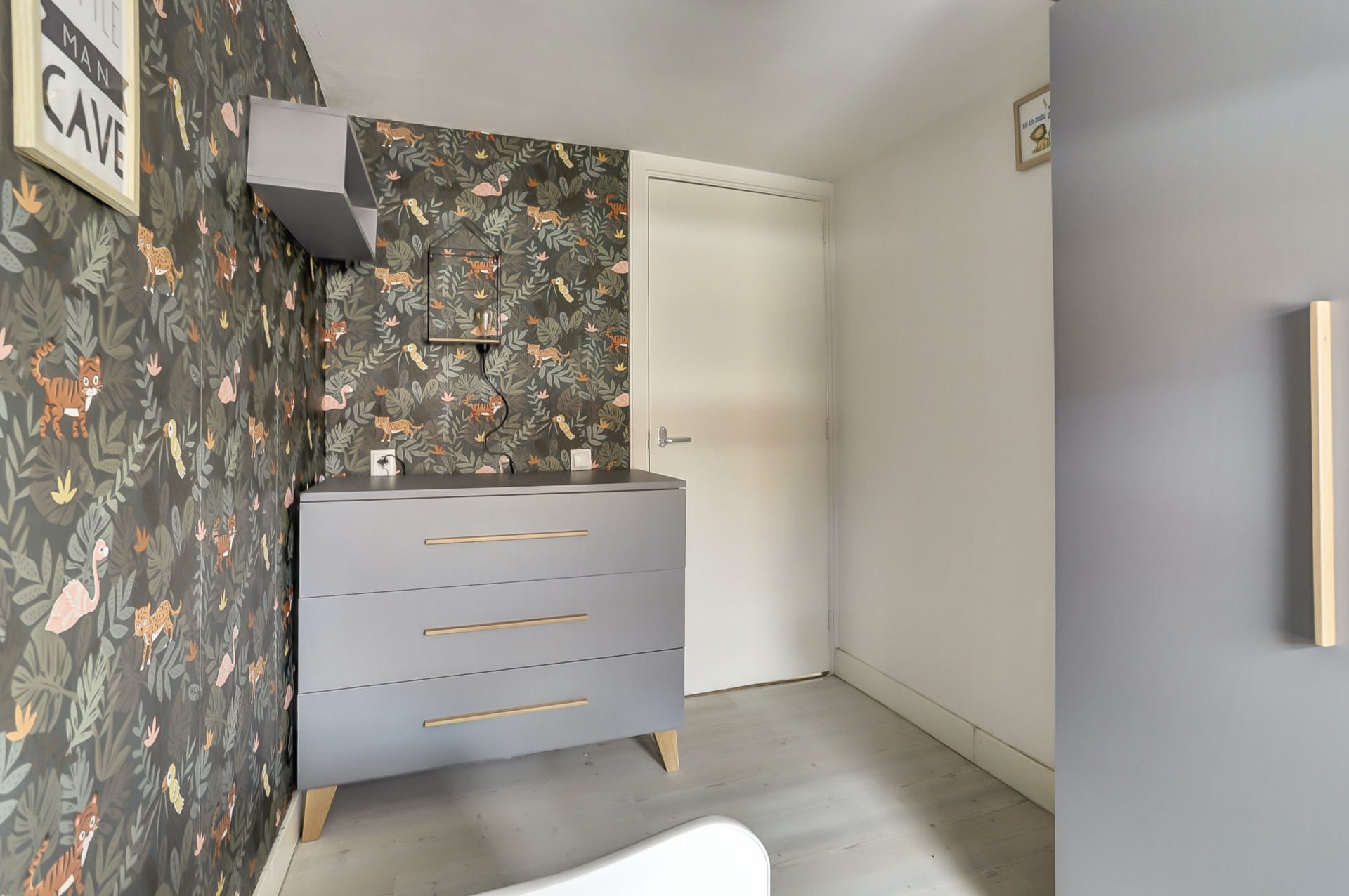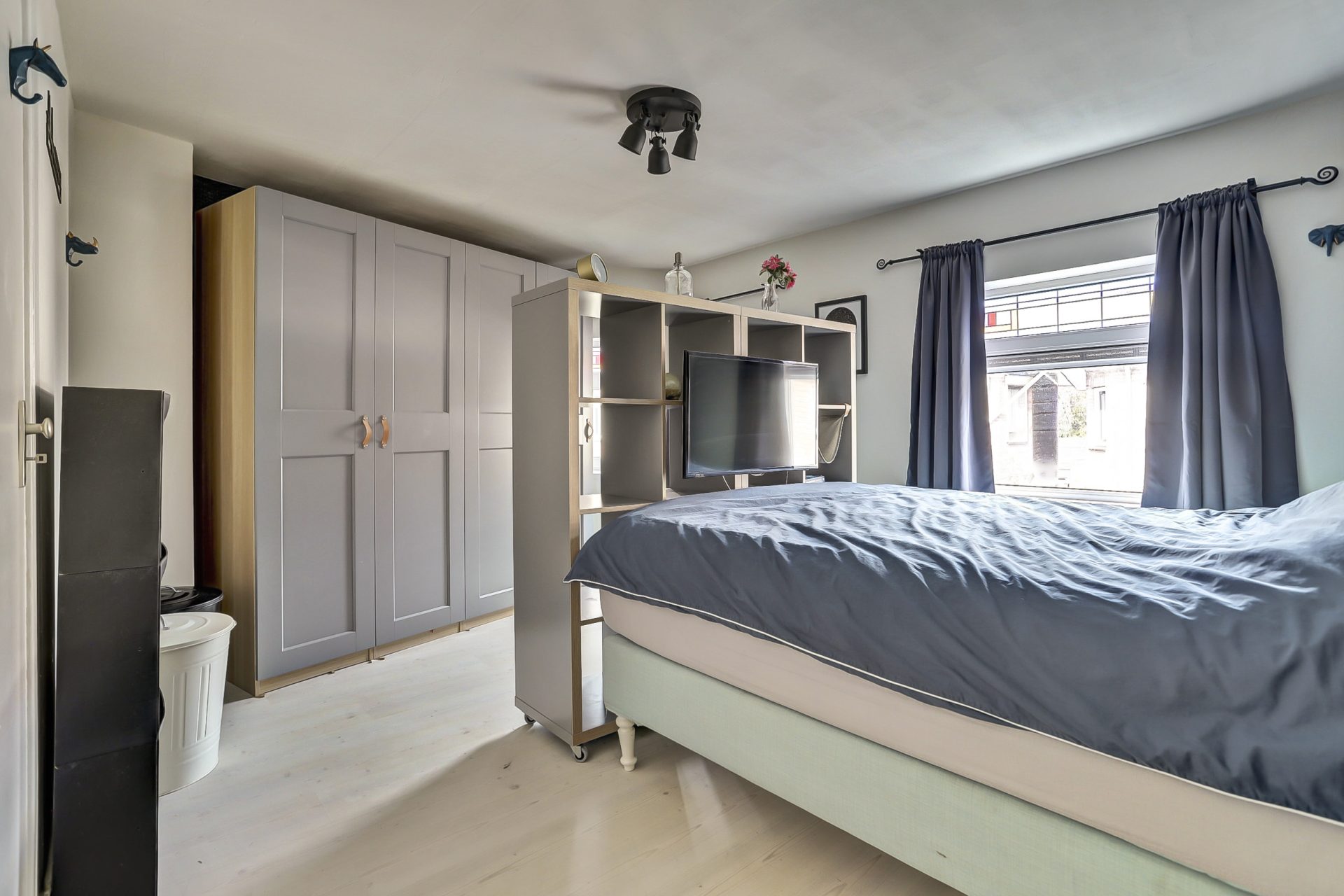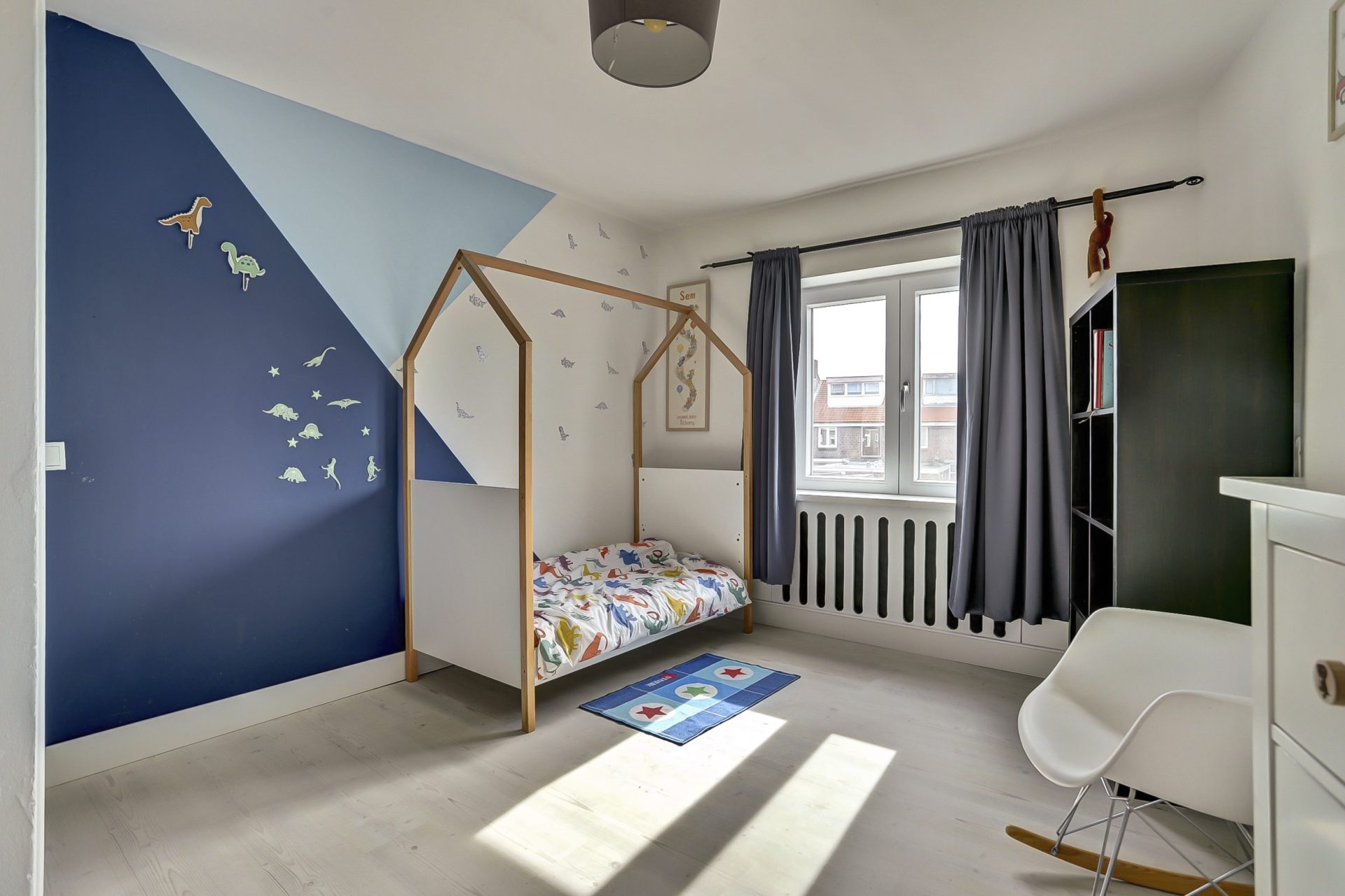 Vanaf de overloop zijn drie slaapkamers, de badkamer en de vaste trap naar de zolder bereikbaar. Aan de voorzijde van de woning liggen twee slaapkamers, waarbij het glas-in-lood in de ramen een charmant detail vormt. Aan de achterzijde bevindt zich een ruime derde slaapkamer. De gehele bovenverdieping is afgewerkt met een doorlopende lichte laminaatvloer en voorzien van kunststof kozijnen met horren. Twee slaapkamers beschikken over praktische inbouwkasten.