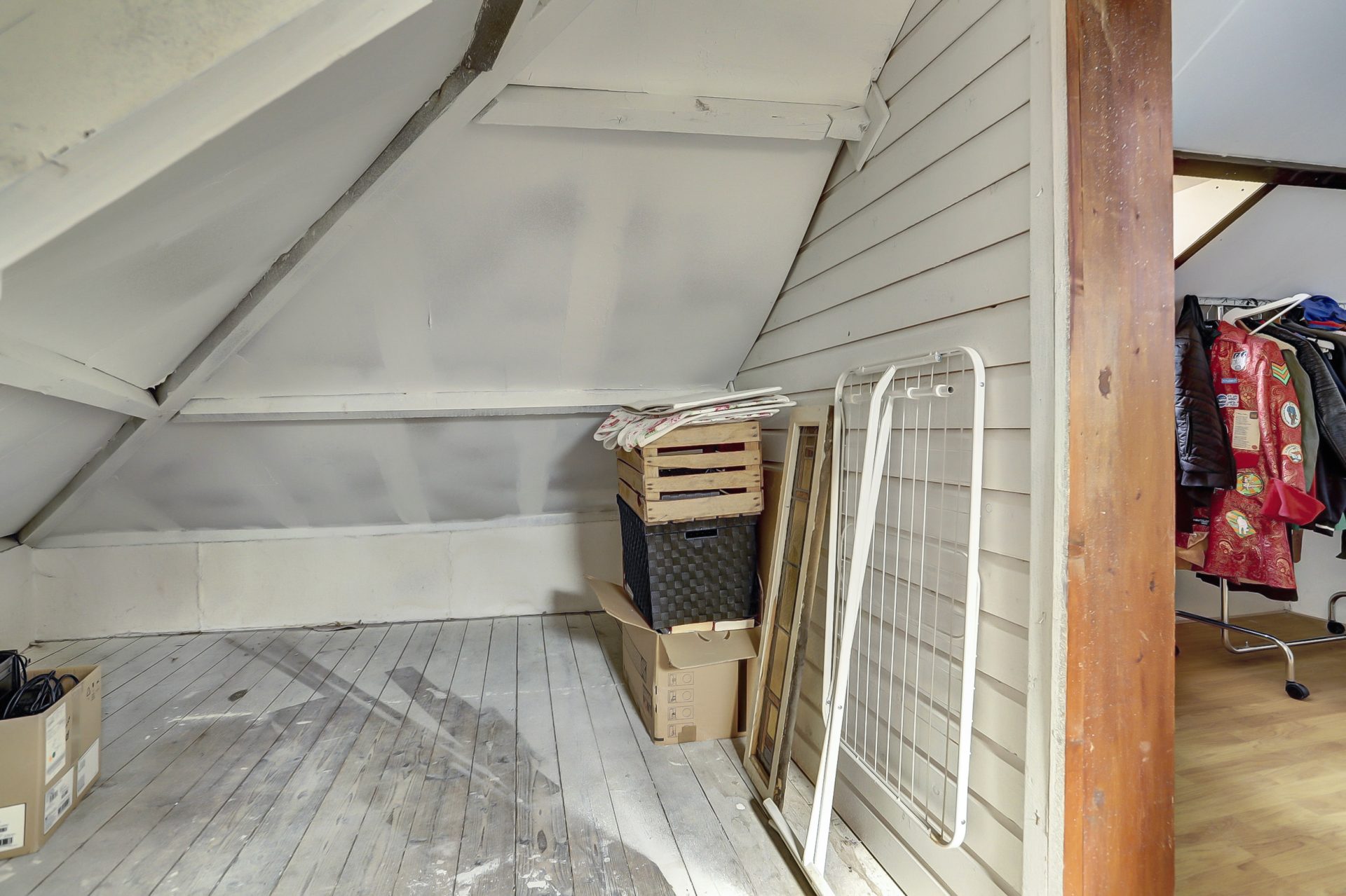 De zolder is verdeeld in een royale bergzolder en een open zolderkamer. Dankzij de kleine dakkapel, de aanwezige verwarming en de isolatie is deze ruimte comfortabel in gebruik. Bovendien biedt de zolder de mogelijkheid om een extra slaapkamer te realiseren.