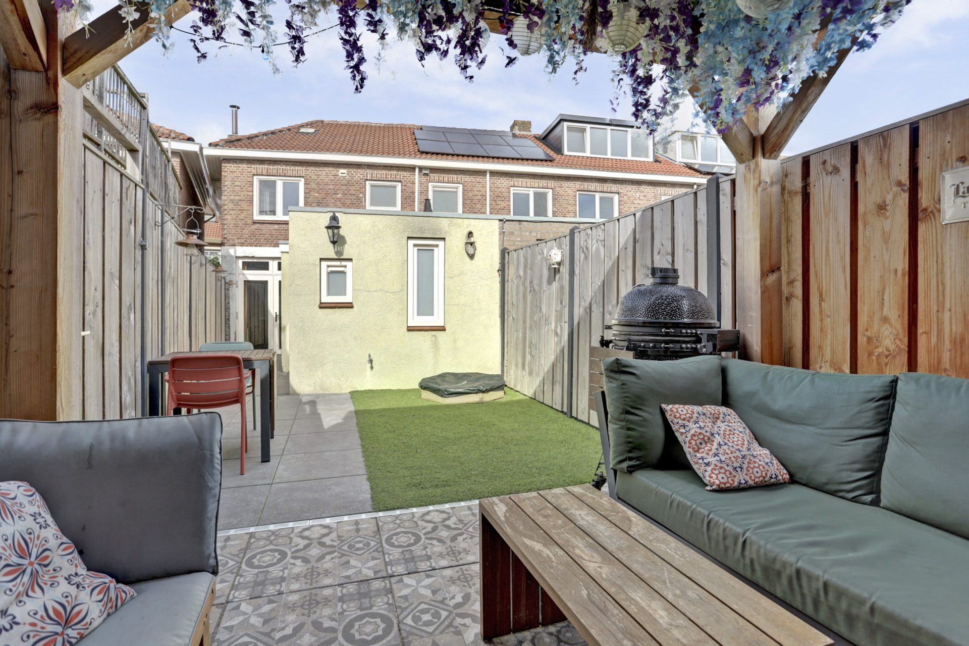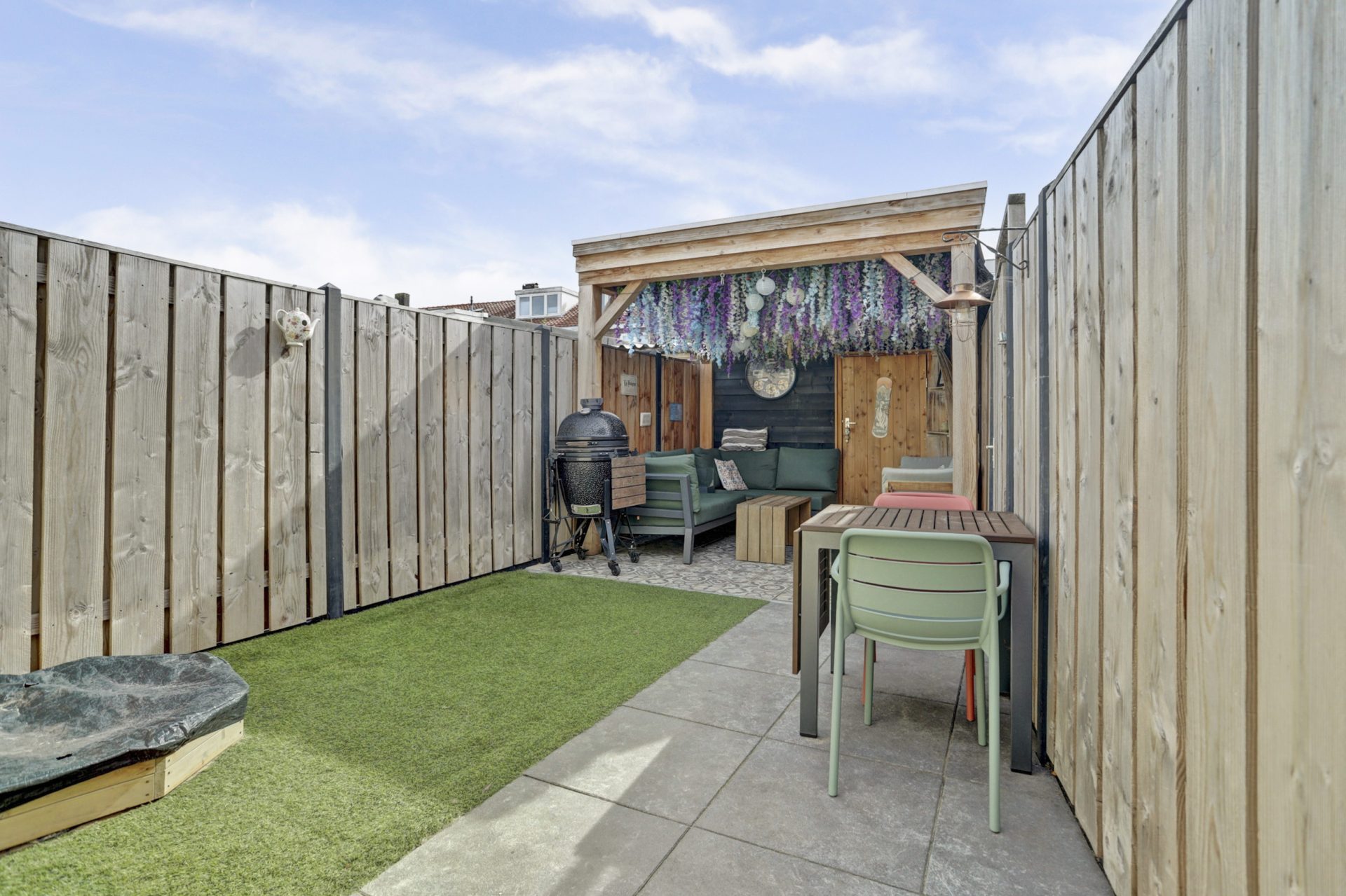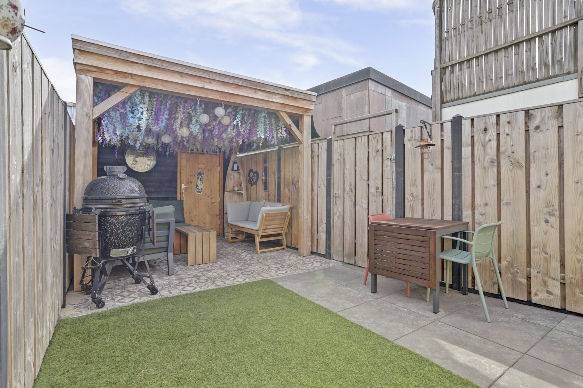 De achtertuin is in 2023 volledig vernieuwd en onderhoudsvriendelijk ingericht met een strakke tegelvloer en een stukje kunstgras. Achterin de tuin bevindt zich een gezellige overkapping, ideaal om ’s avonds nog heerlijk buiten te zitten. De ruime berging biedt volop plek voor fietsen en tuingereedschap. Dankzij de afsluitbare achterom is de tuin ook eenvoudig vanaf de straat bereikbaar.