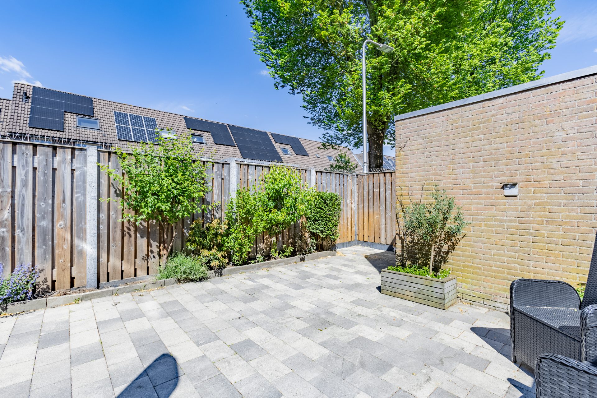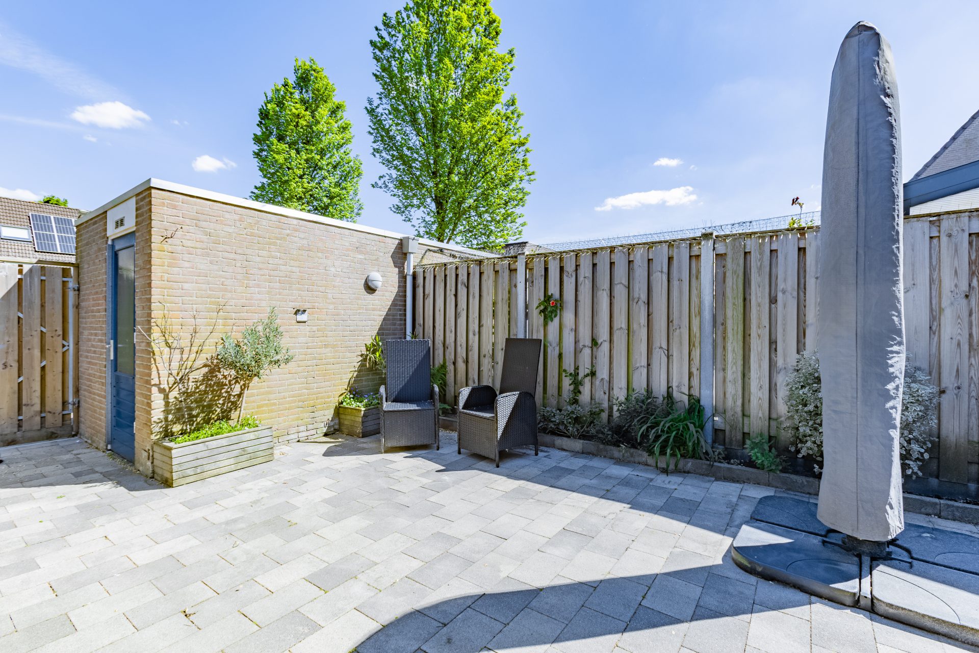 • Diepe, onderhoudsvriendelijke tuin met berging en achterom